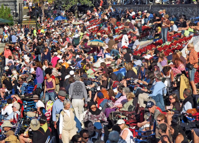 The crowd on the causeway waiting for the annual Victoria Symphony Splash.