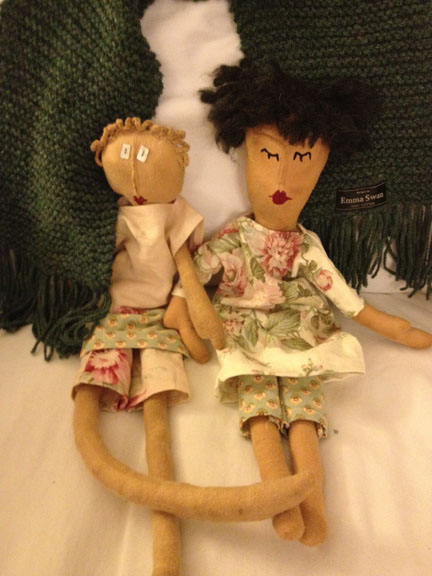 My BFF with the scarf and dolls she made for me.