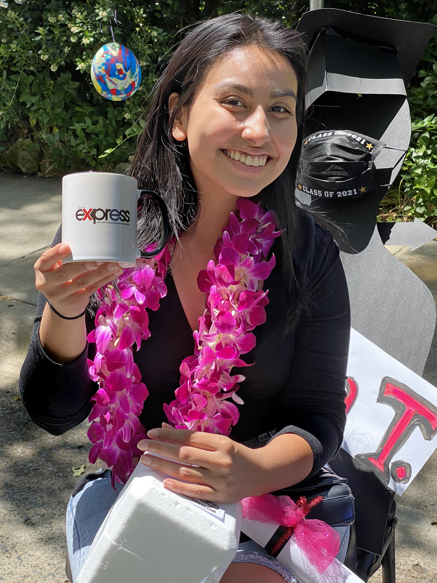 Finally, to see people in person, happy people, masked, yes, but out in public and celebrating. I spotted one of last year’s journalism graduates—now transferred to Sac State who’d just finished a reporting project for students for The New York Times, about to begin a photo internship for The Sacramento Bee—hired to shoot the commencement. I greeted the pregnant public information officer who had been so helpful to the Express students when they couldn’t reach sources typically found more easily on campus. The vice president of instruction came to give me a goodbye hug; when he was a young English prof, we started the college literary journal together. And I went to the president, handing out those blank diploma covers, and thanked him for his availability to the Express during these extraordinary times, not to mention his leadership of the college I’d called home since 1989.