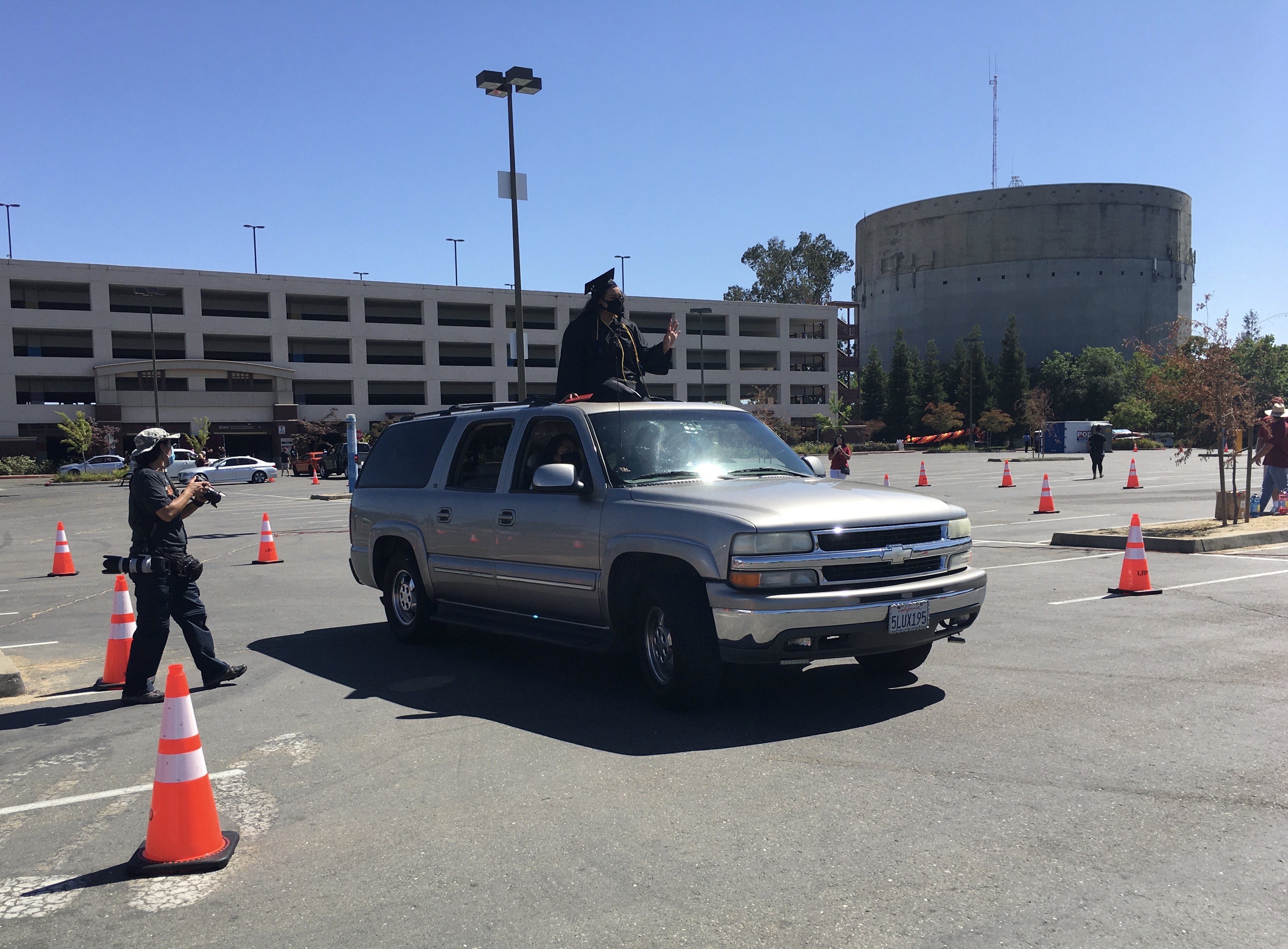 But there was one more. Sacramento City College organized (a huge undertaking) a drive-through commencement in its huge parking lot on campus to honor both the 2020 and 2021 graduates. Some 400 students RSVP’d.