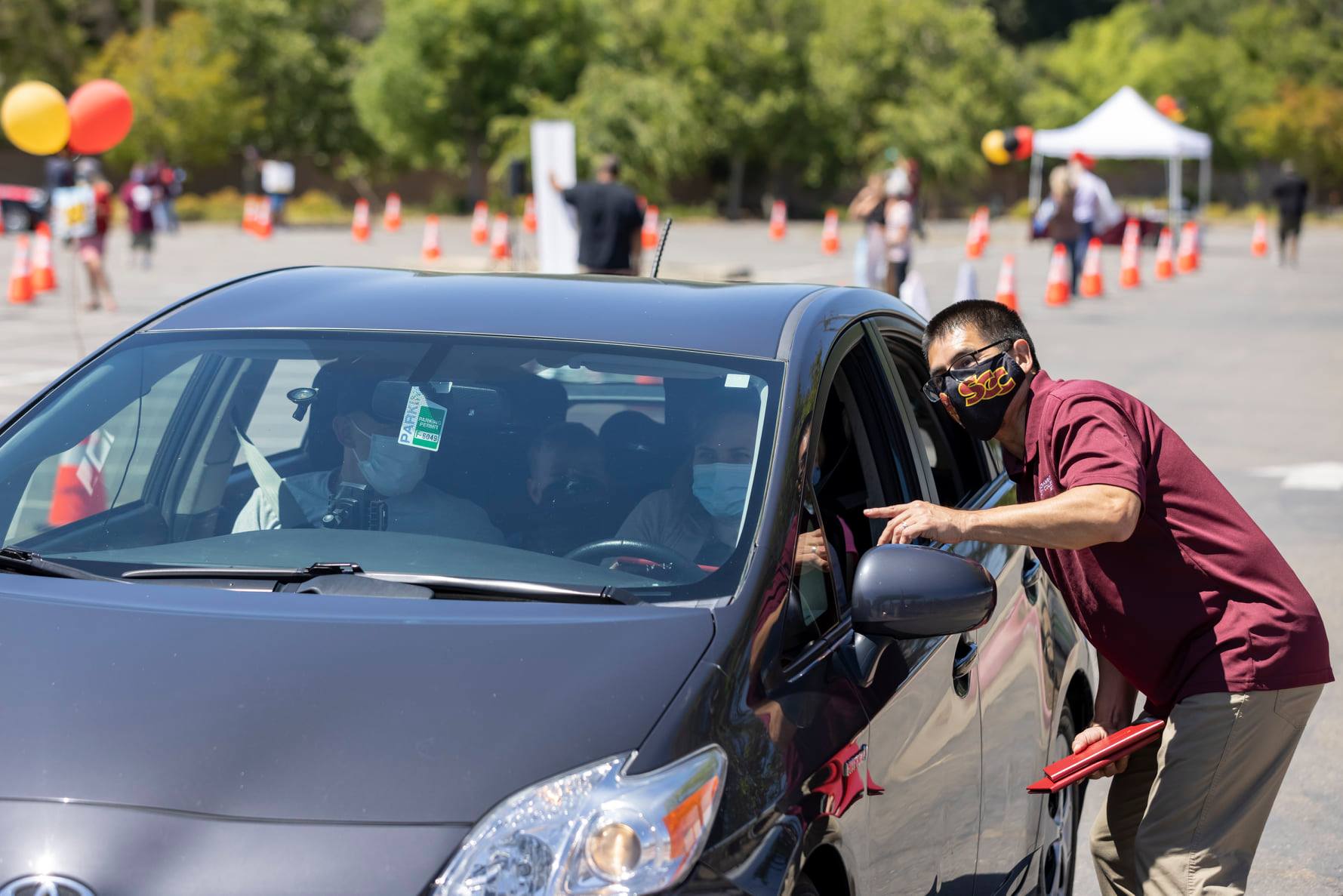 Sacramento City College President Michael Gutierrez at the 2021 drive-through commencement.
