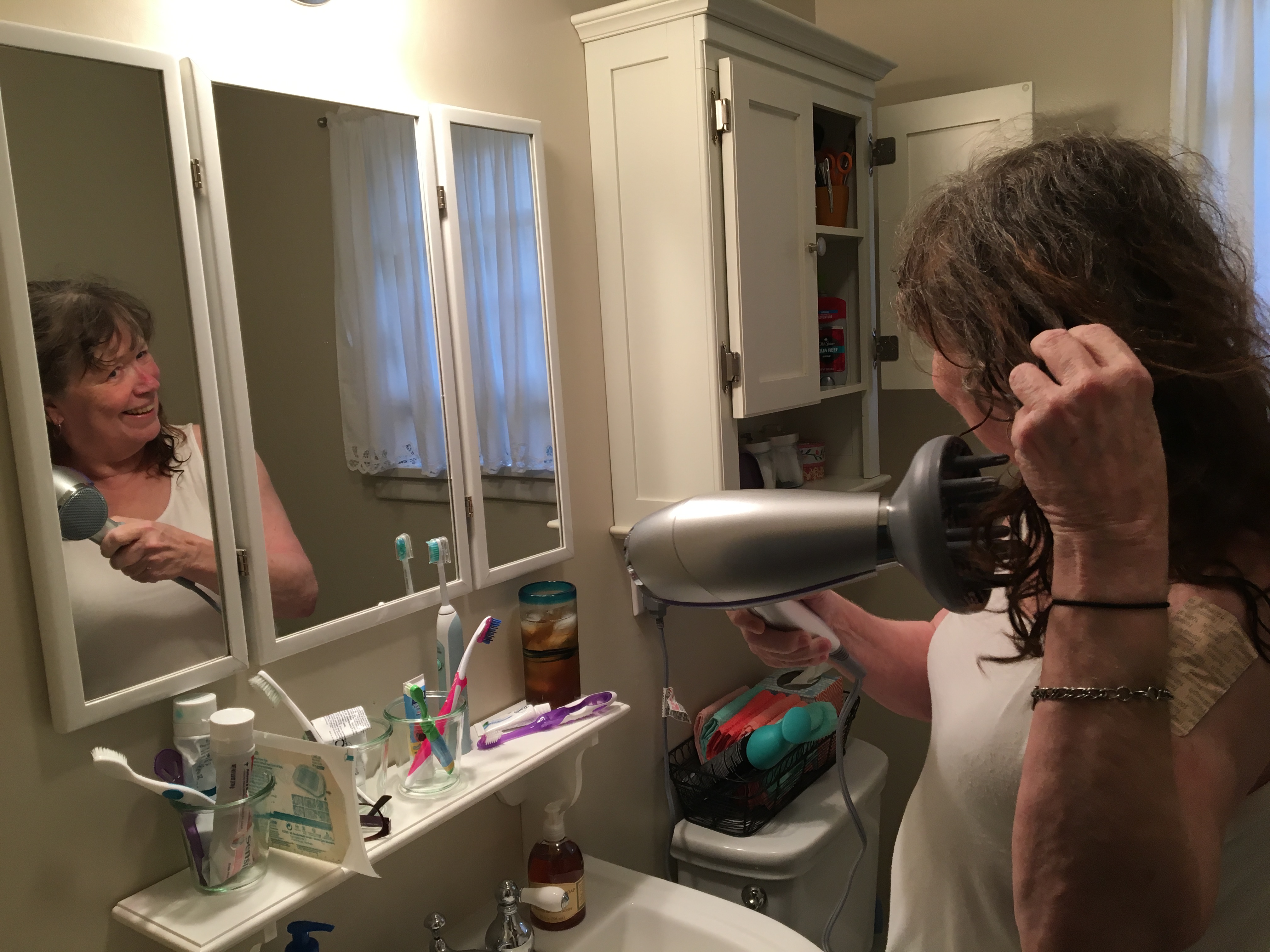 Georgann drying her hair, Bremerton, Washington, Sept. 16, 2017