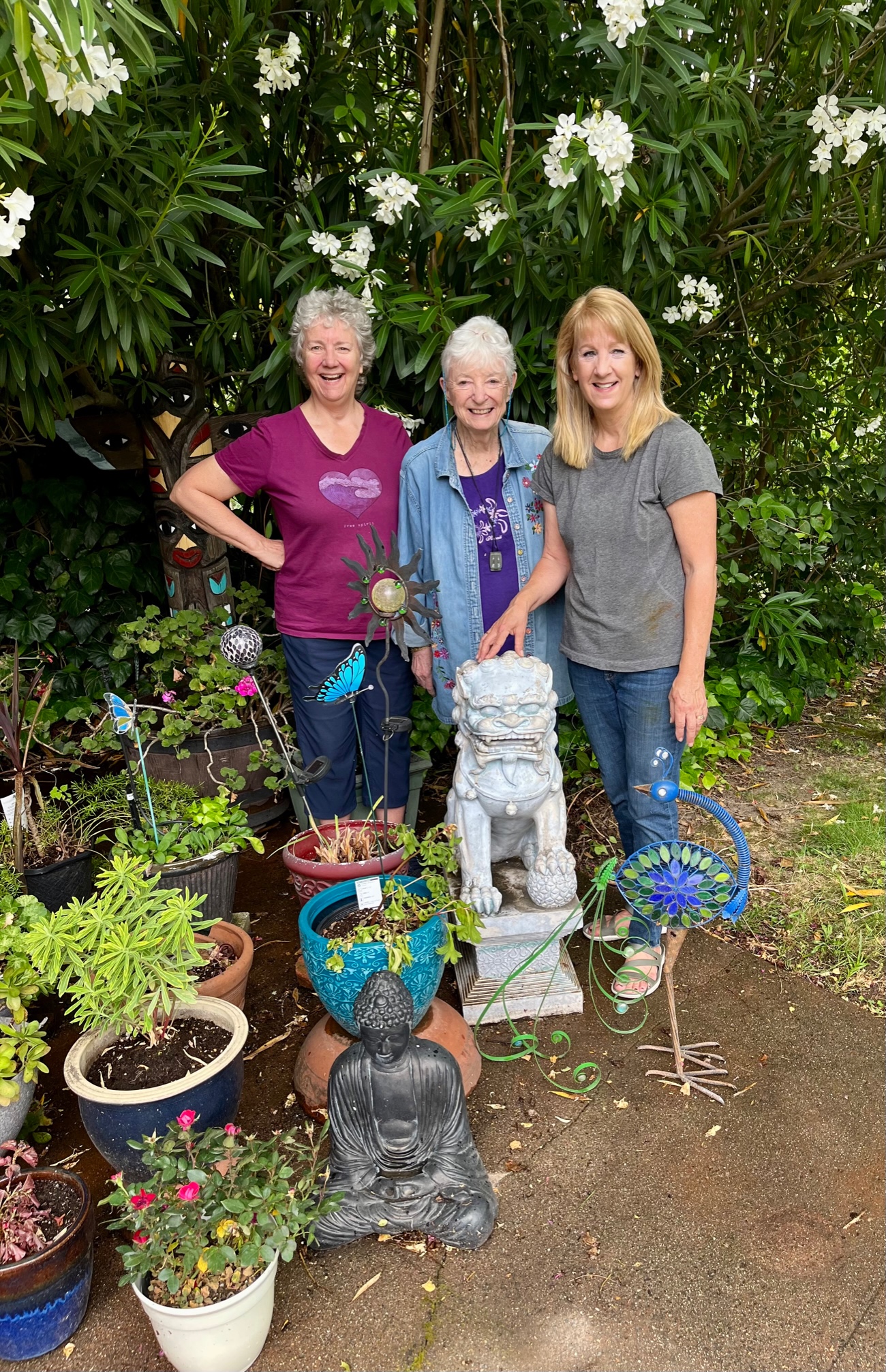 Mom and her girls—Jan on the left, Donna on the right—after the annual patio garden cleanup.