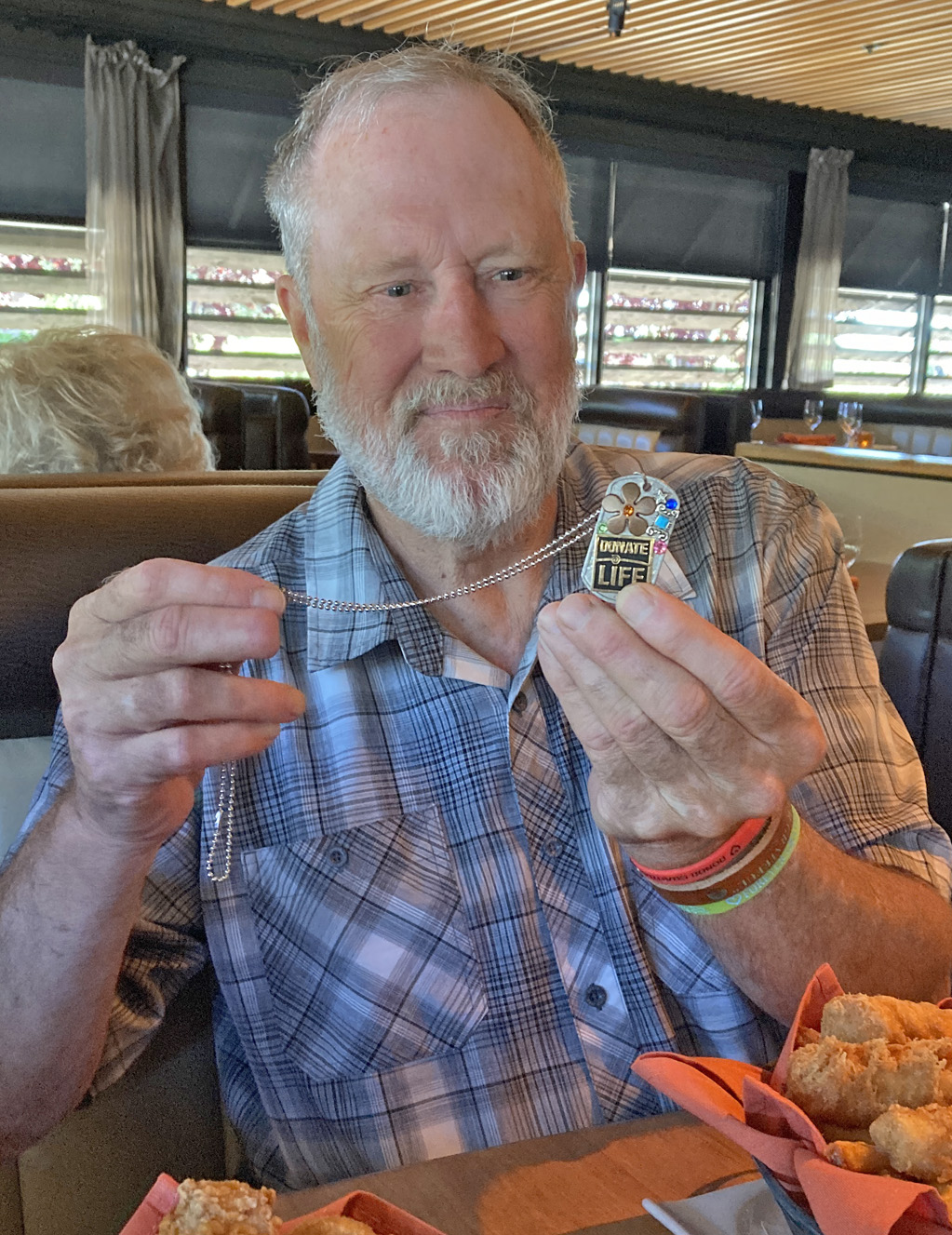 Don and Cora had a lot to talk about. She drove down from her home in Minden, Nevada, for the day to meet Don and present him with a Donate Life medal in honor of his new heart. He gave us Donor Gratitude T-shirts and bracelets, as well as lots of smiles and hugs all around.