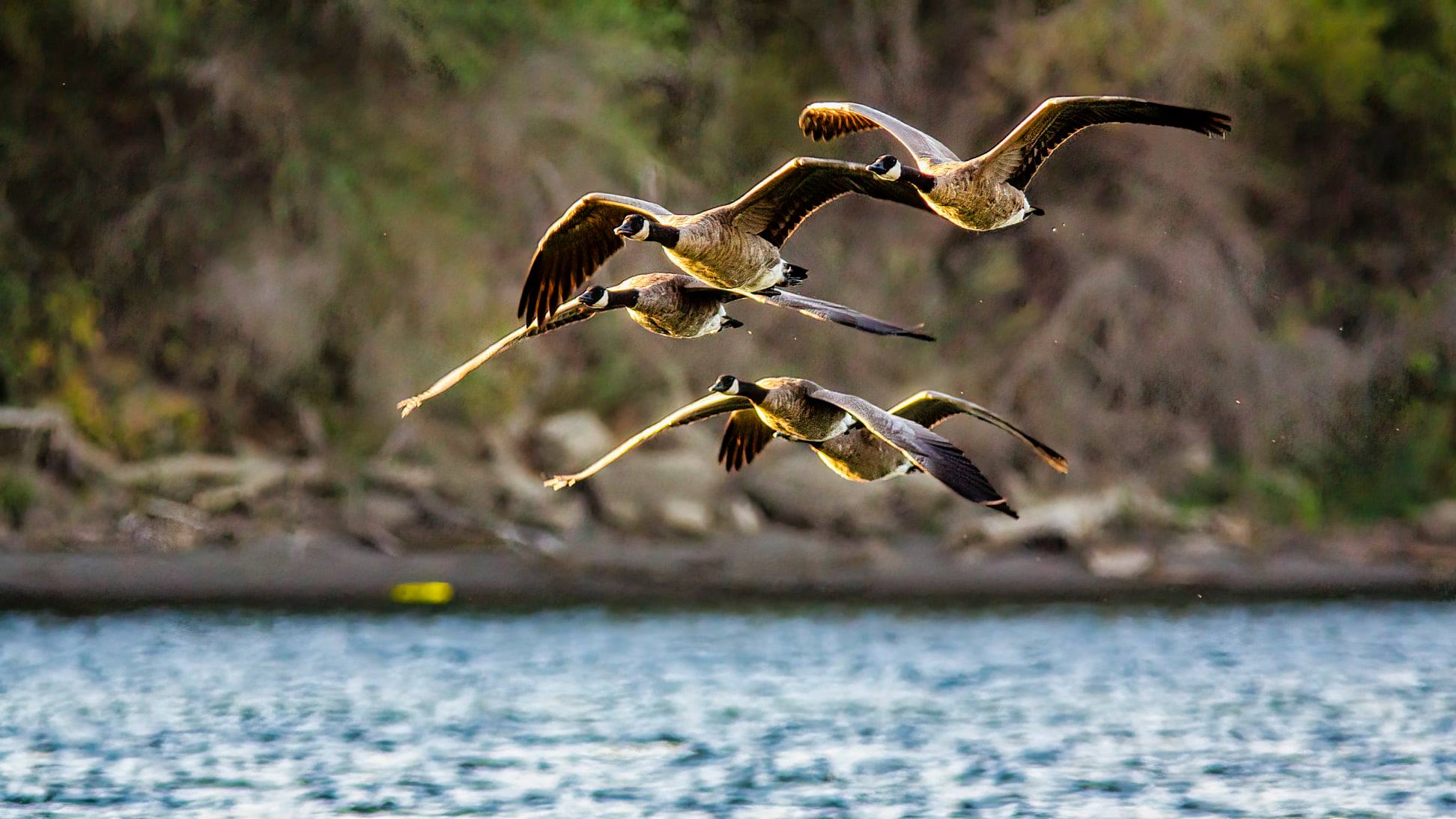 geese in their zipper formation,