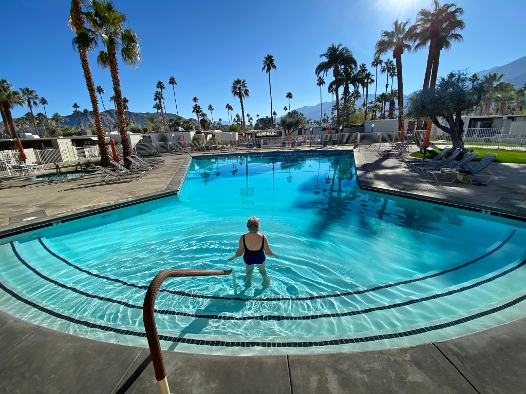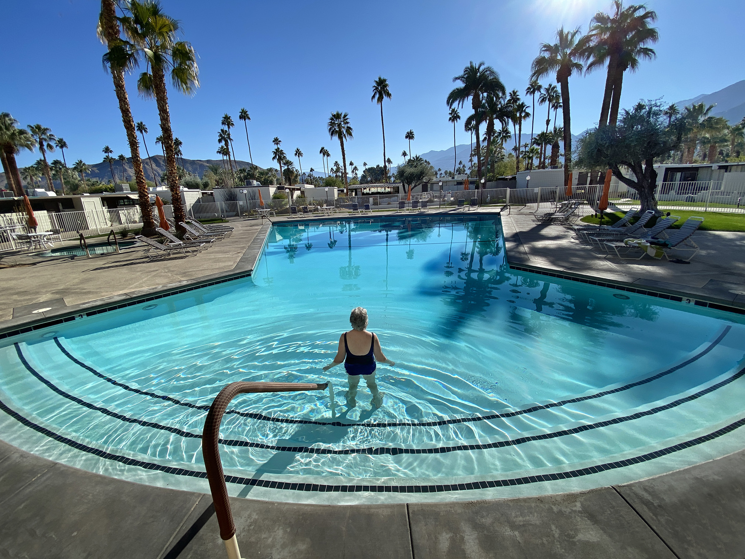 under the palms, admiring the San Jacinto