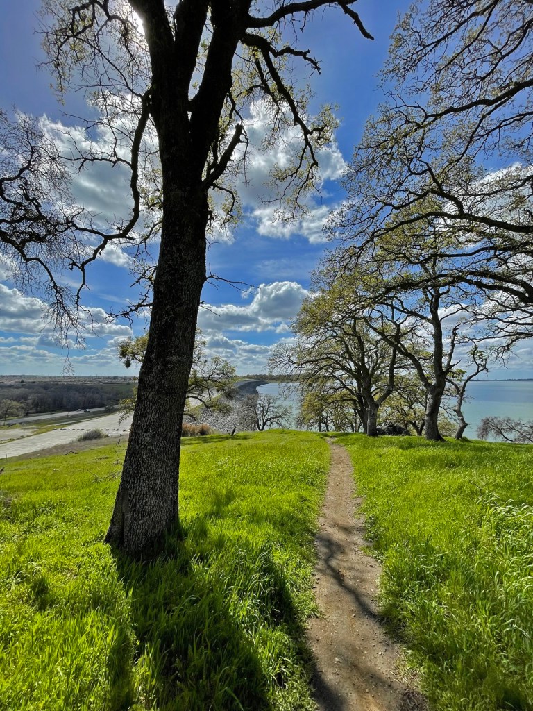 view of the lake, then veers uphill