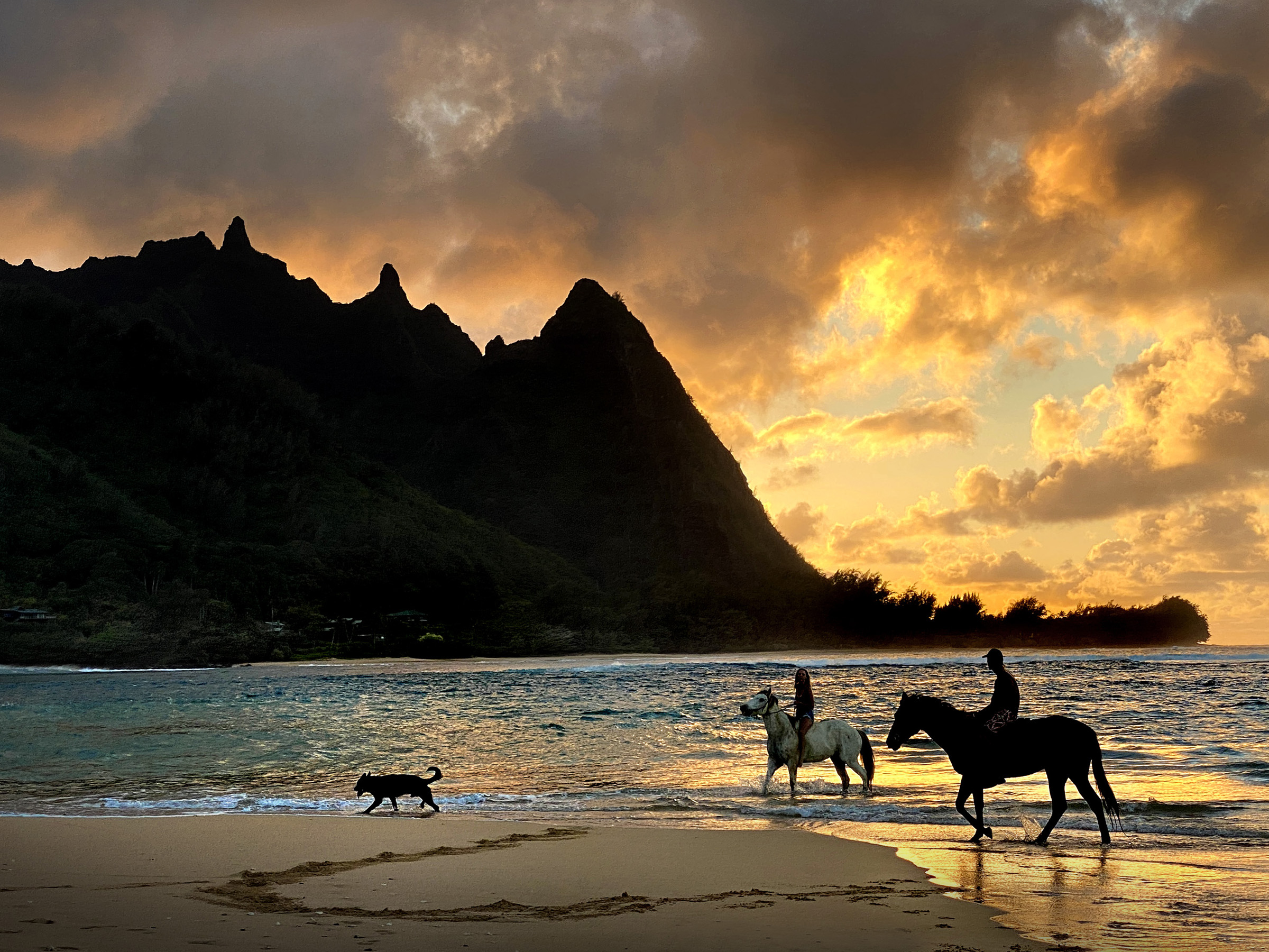 Makana and the sunset behind them, and,