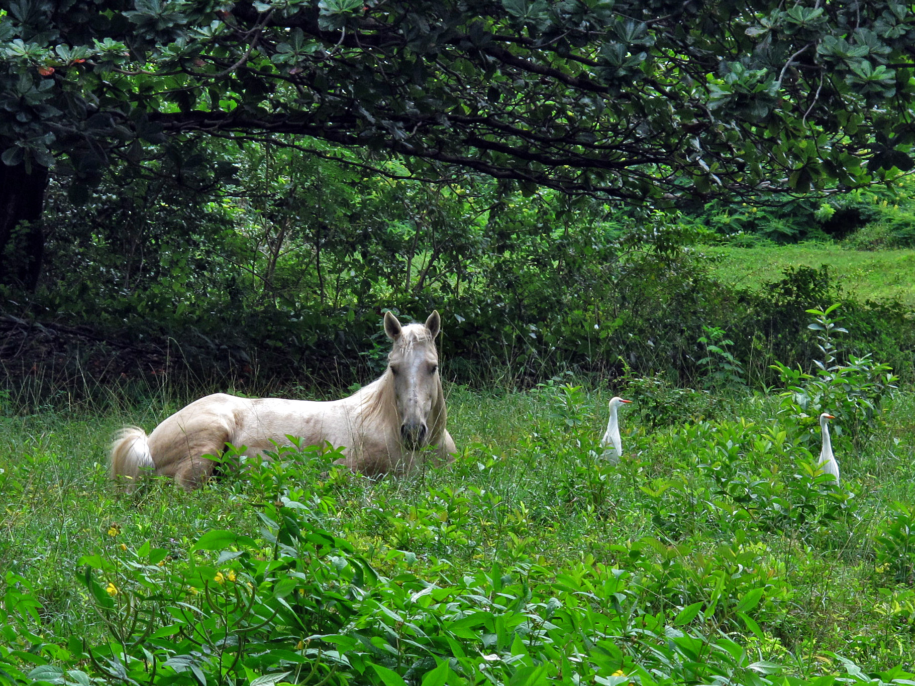 Horse and cattle egrets, Haena, Kauai / Photo: Dick Schmidt