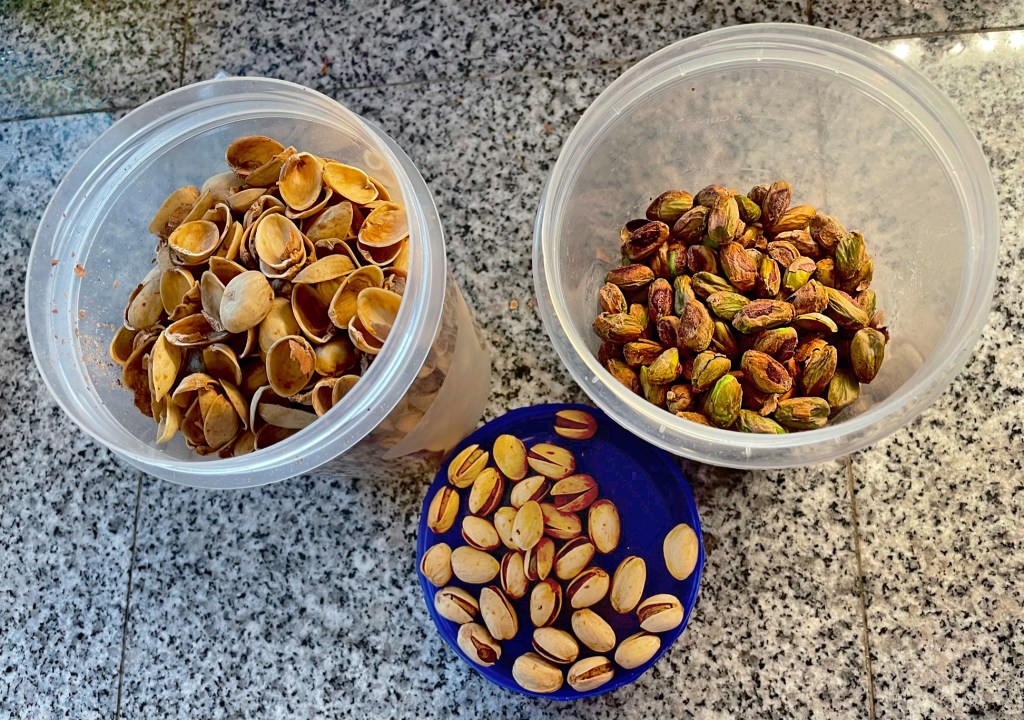 plunking the greenish nuts she