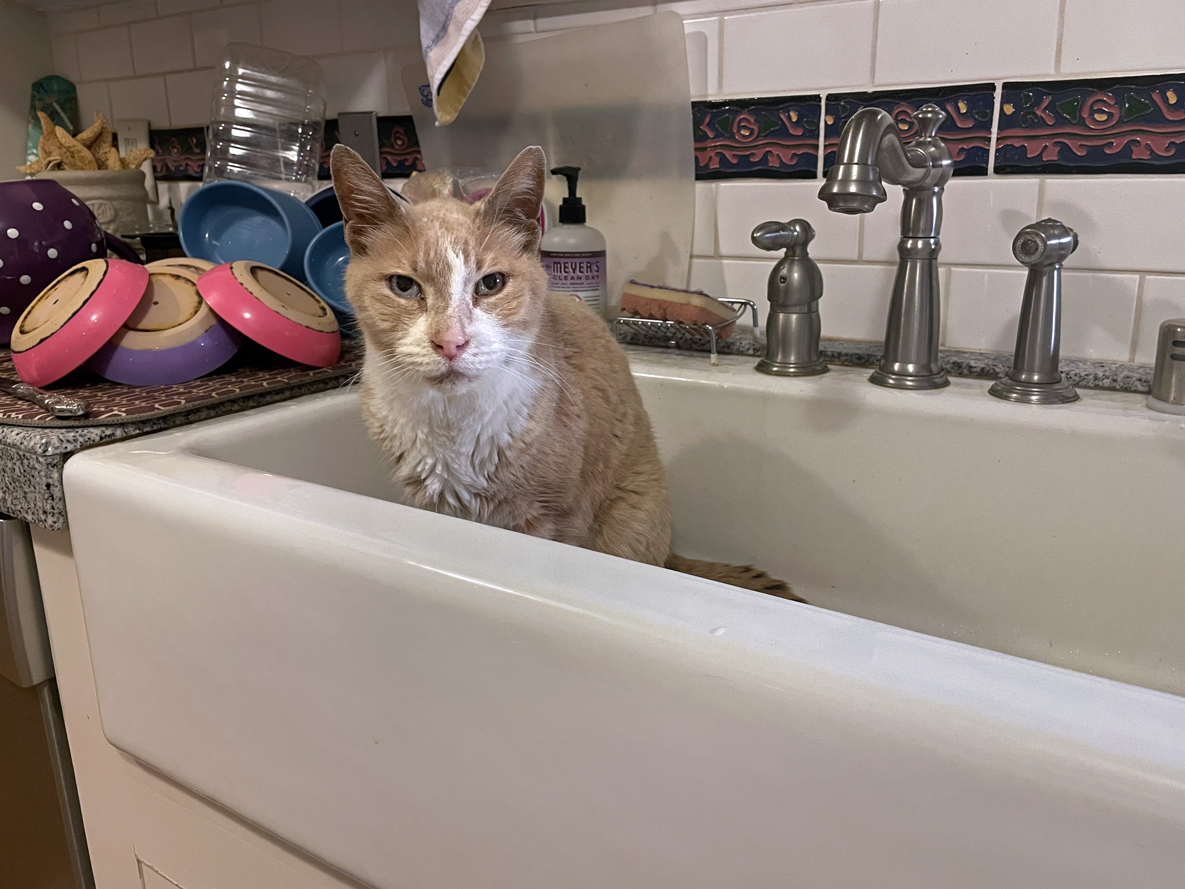 plops himself in the sink,