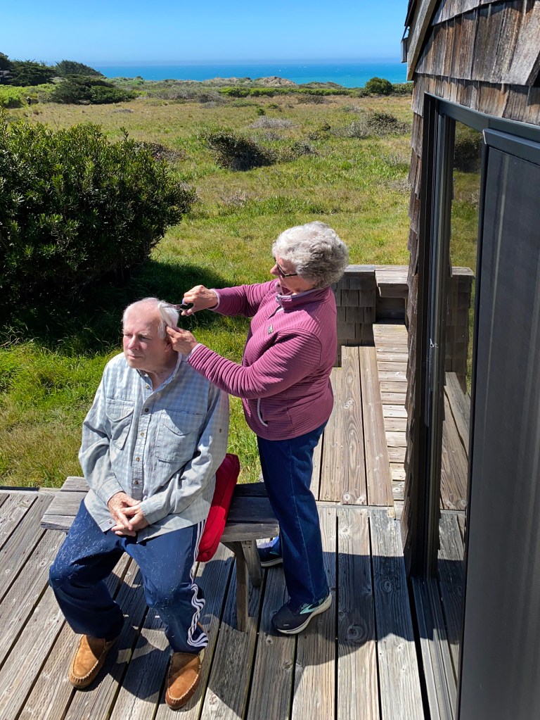 as I cut your hair on the deck