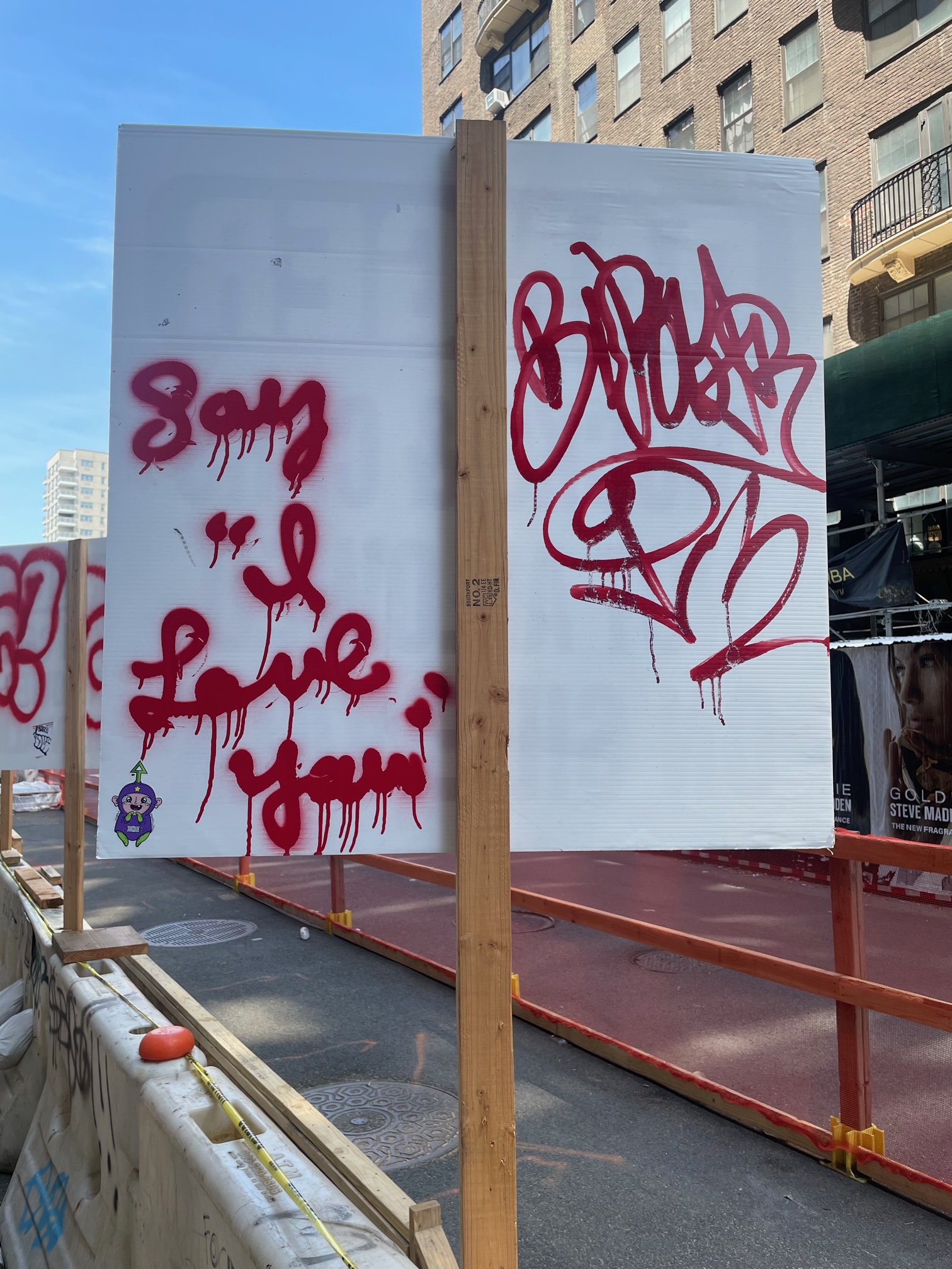 Spray painted on the back of signs