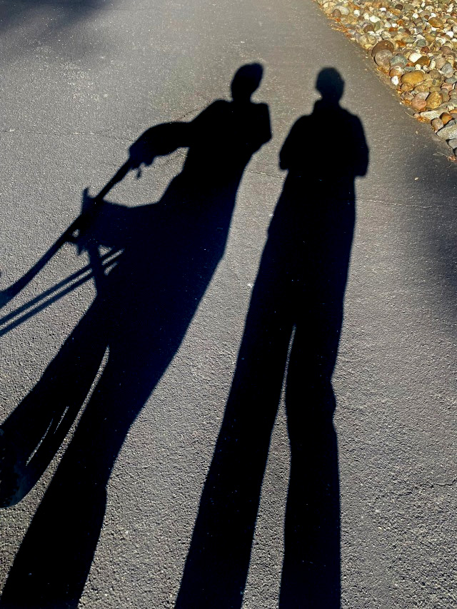 Our shadows walk side by side,