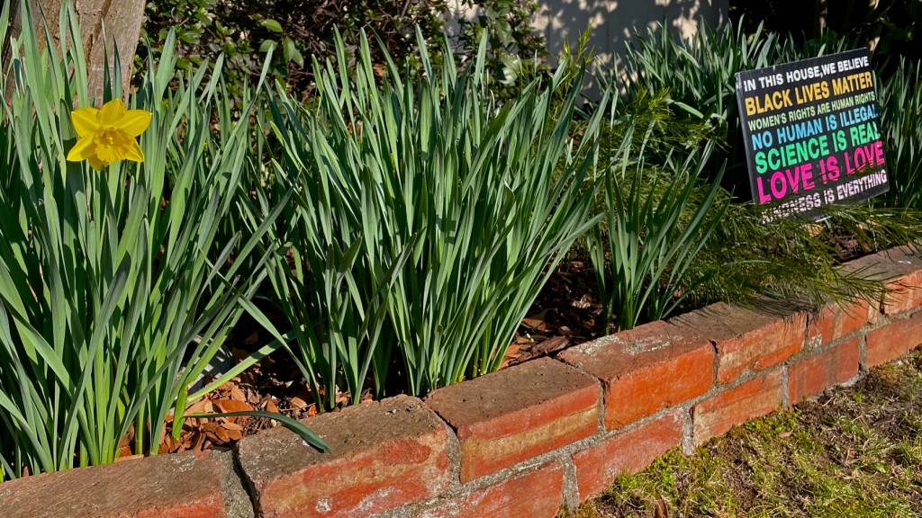the sign in her yard that she planted