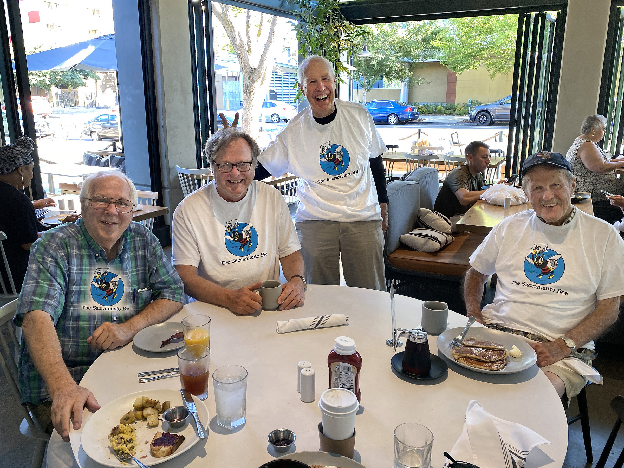 I am certainly not one of Walt’s oldest buddies or colleagues, though I met him when I worked at The Bee as a copy editor in the early 1980s. And I was not a regular at the too-early breakfast gatherings Walt and other former Bee folks (Steve Gibson as well as my partner Dick Schmidt, among others) convened in the last 15 years or so at the Tower Café and Café Bernardo—though I did make periodic appearances as a former “girl reporter” (my term that made them laugh; these thoughtful feminists would never have used such an chauvinistic phrase).
