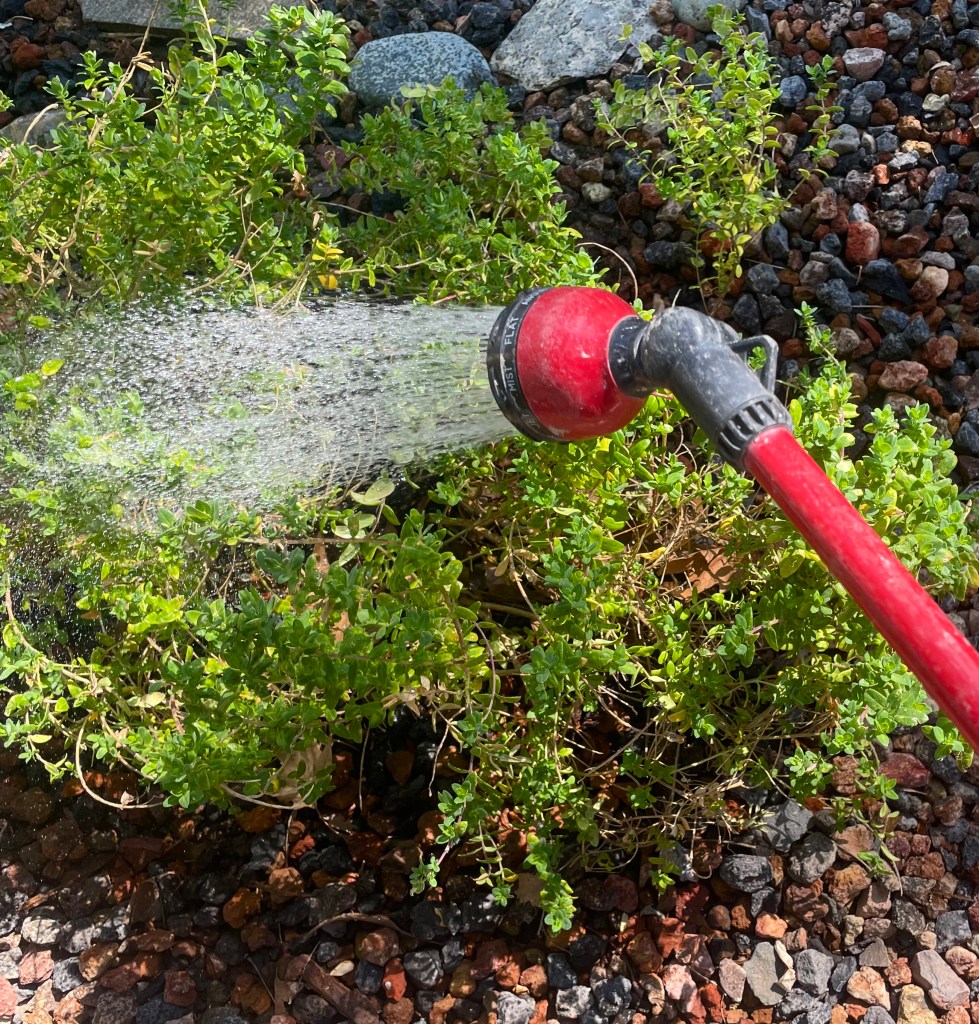 Hand watering the day before