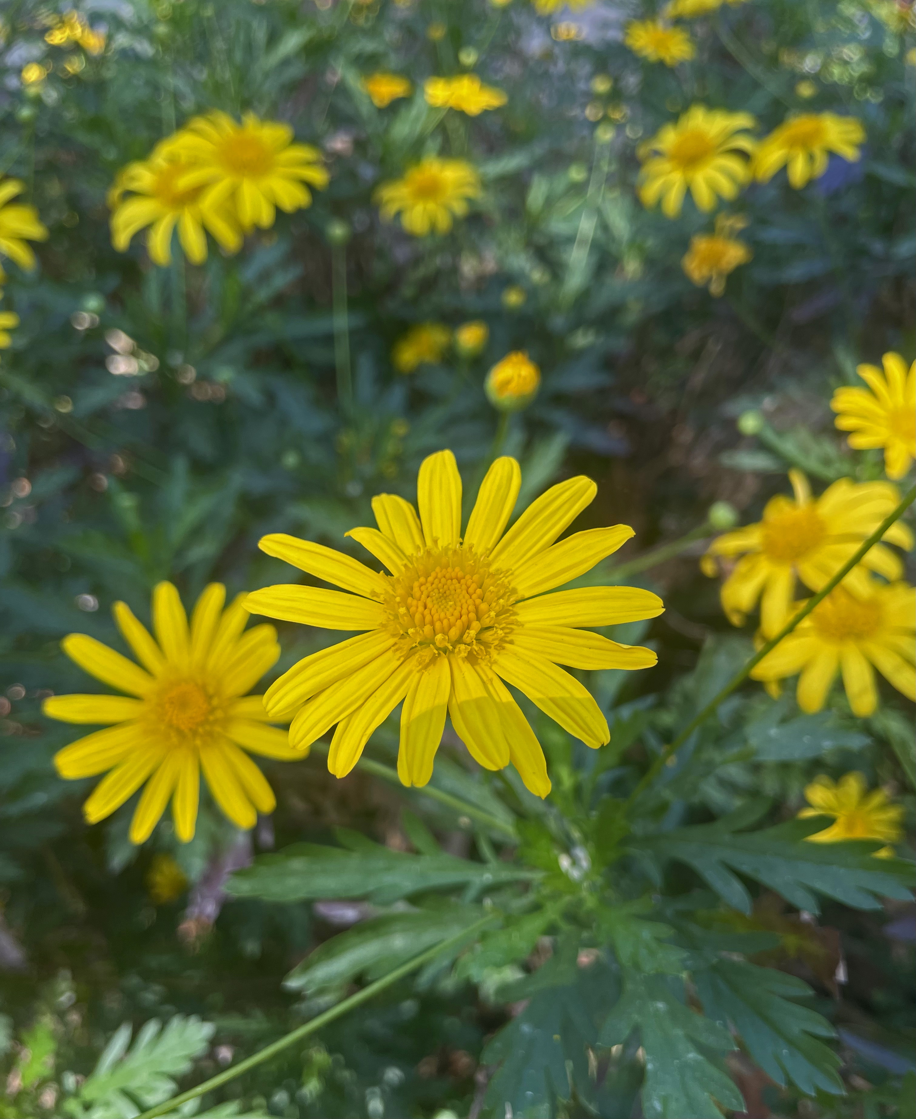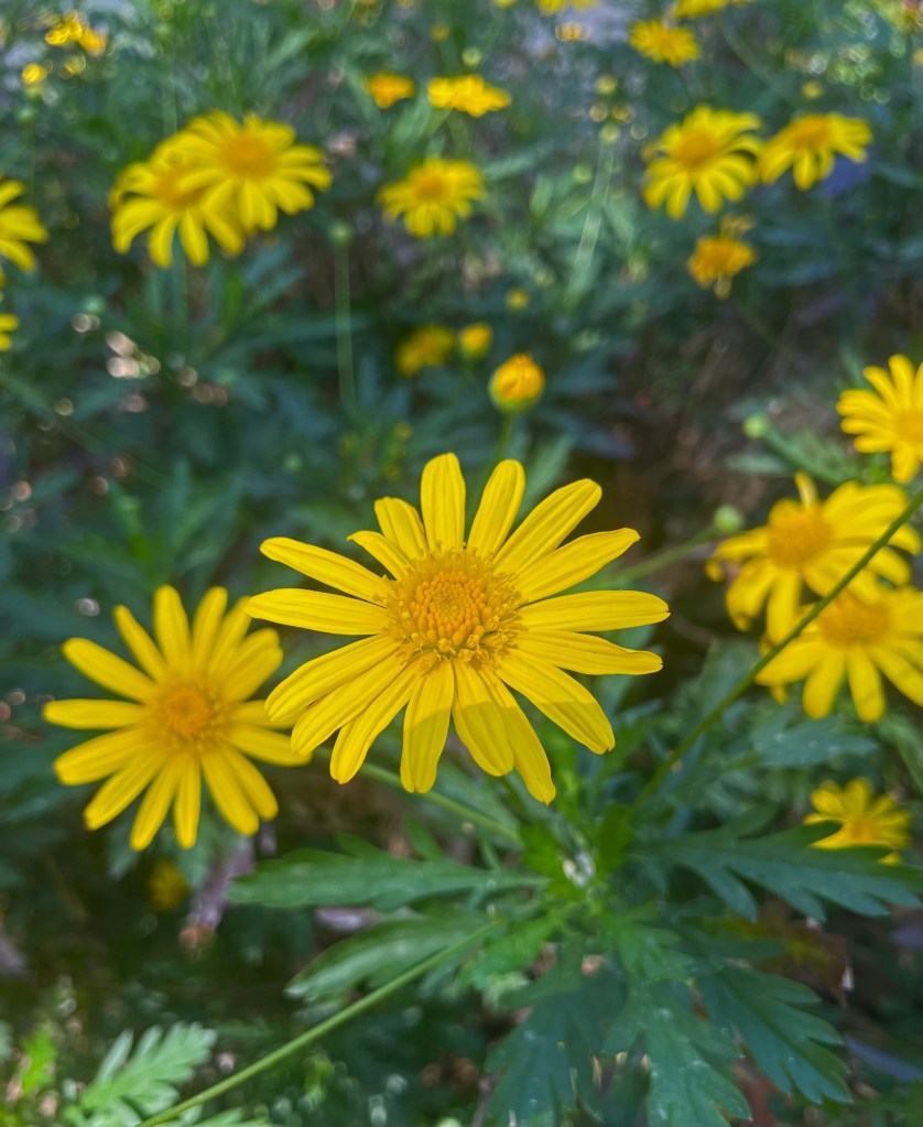 yard the yellow daisies bounce
