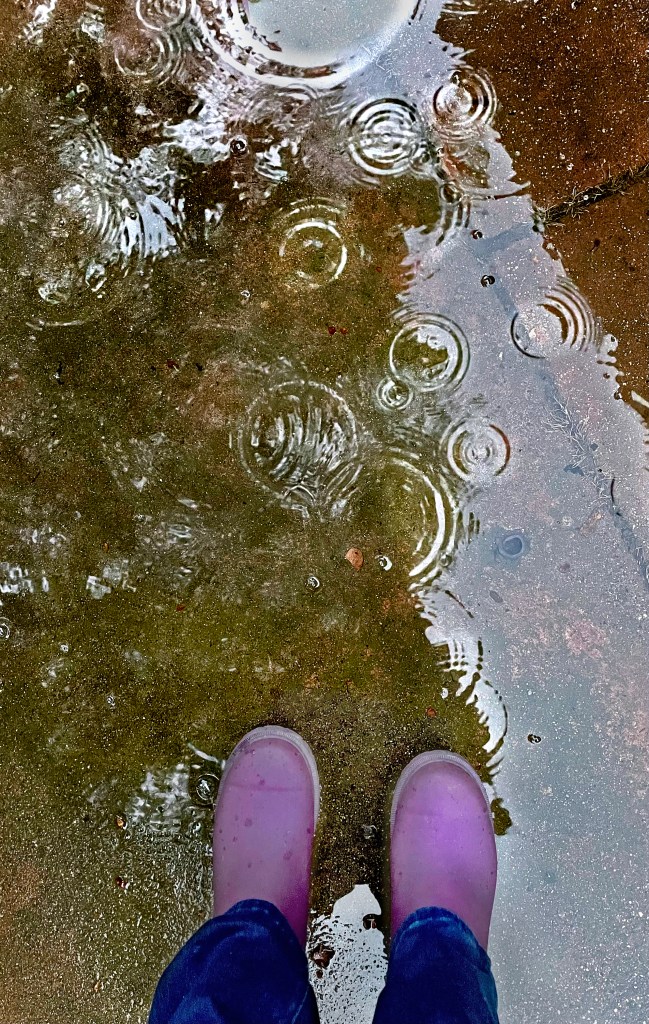 rubber boots, don the rain jacket