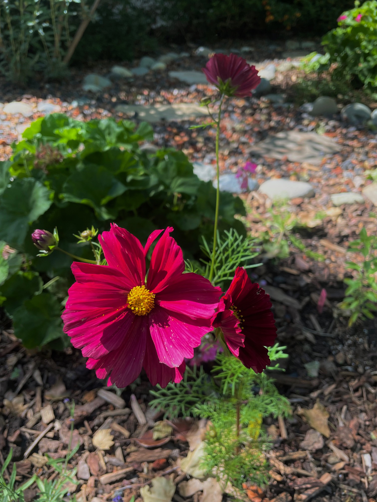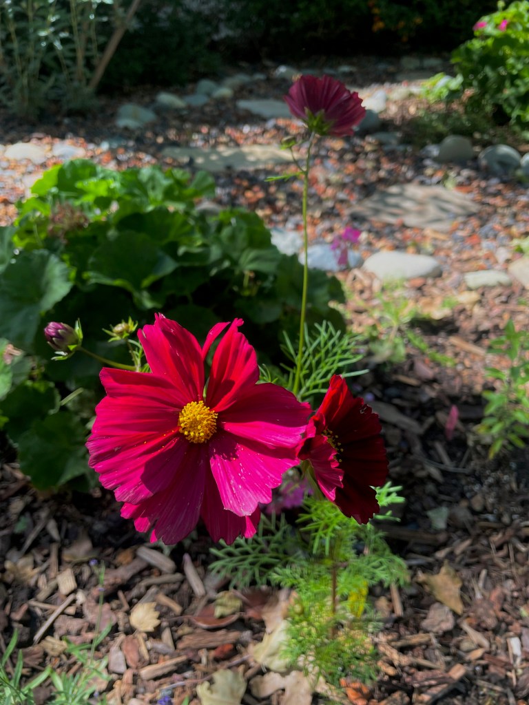 of cosmos standing tall in my front yard,