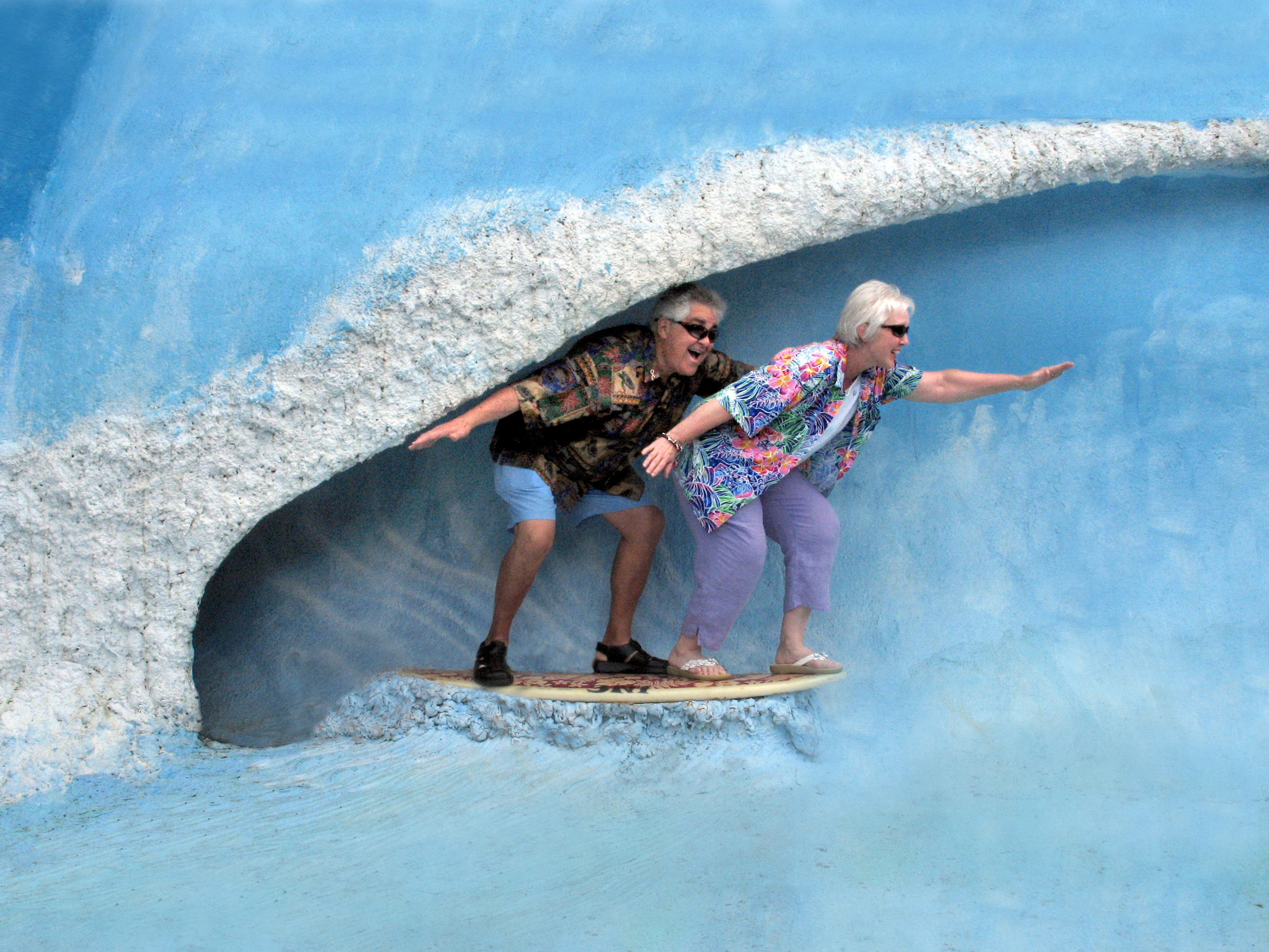 Margery and John Thompson, hangin’ 20, Kauai, 2005 / Photo: Dick Schmidt
